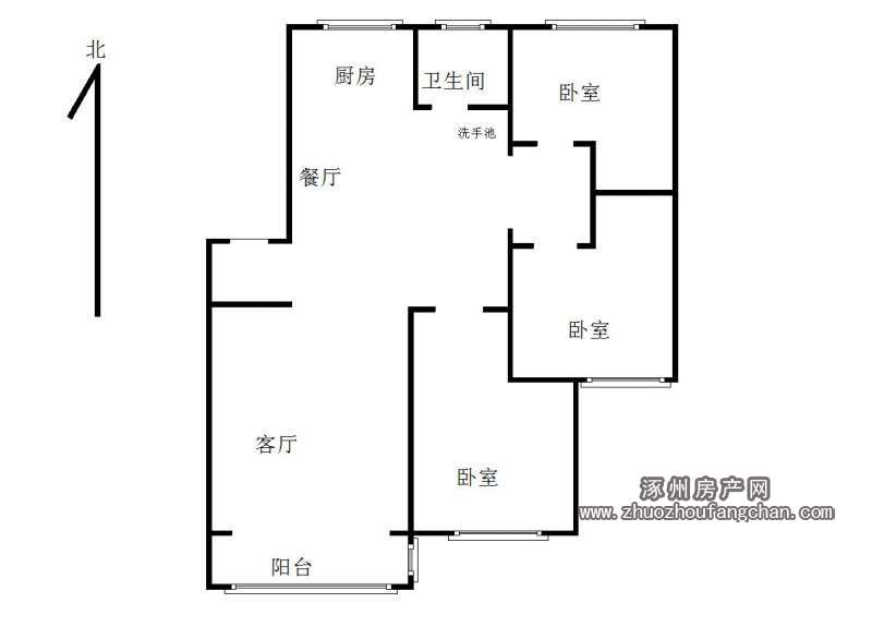- 房屋戶型3室2廳1衛(wèi)1陽